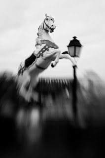 Parigi 2009,  sotto la Tour Eiffel. Solo a Parigi sono rimasti questi vecchi cavalli da giostra che  ricordano il  Carnevale di noi bambini, insieme alle maschere e allo zucchero filante.